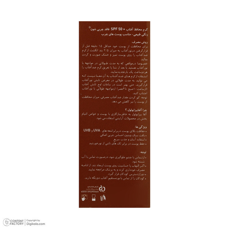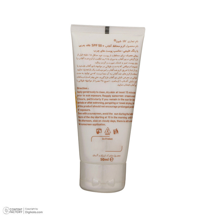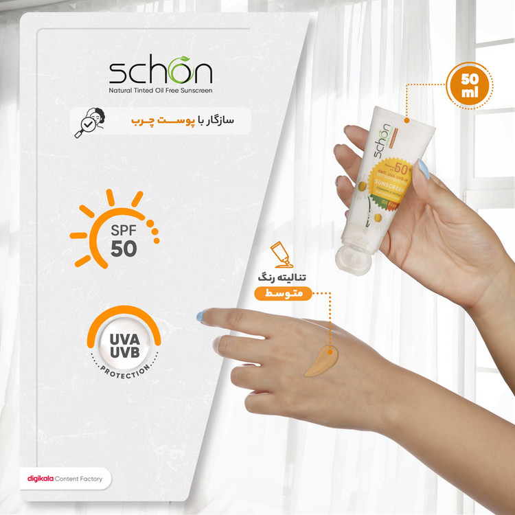 کرم ضدآفتاب رنگی فاقد چربی شون با رنگ طبیعی + SPF50